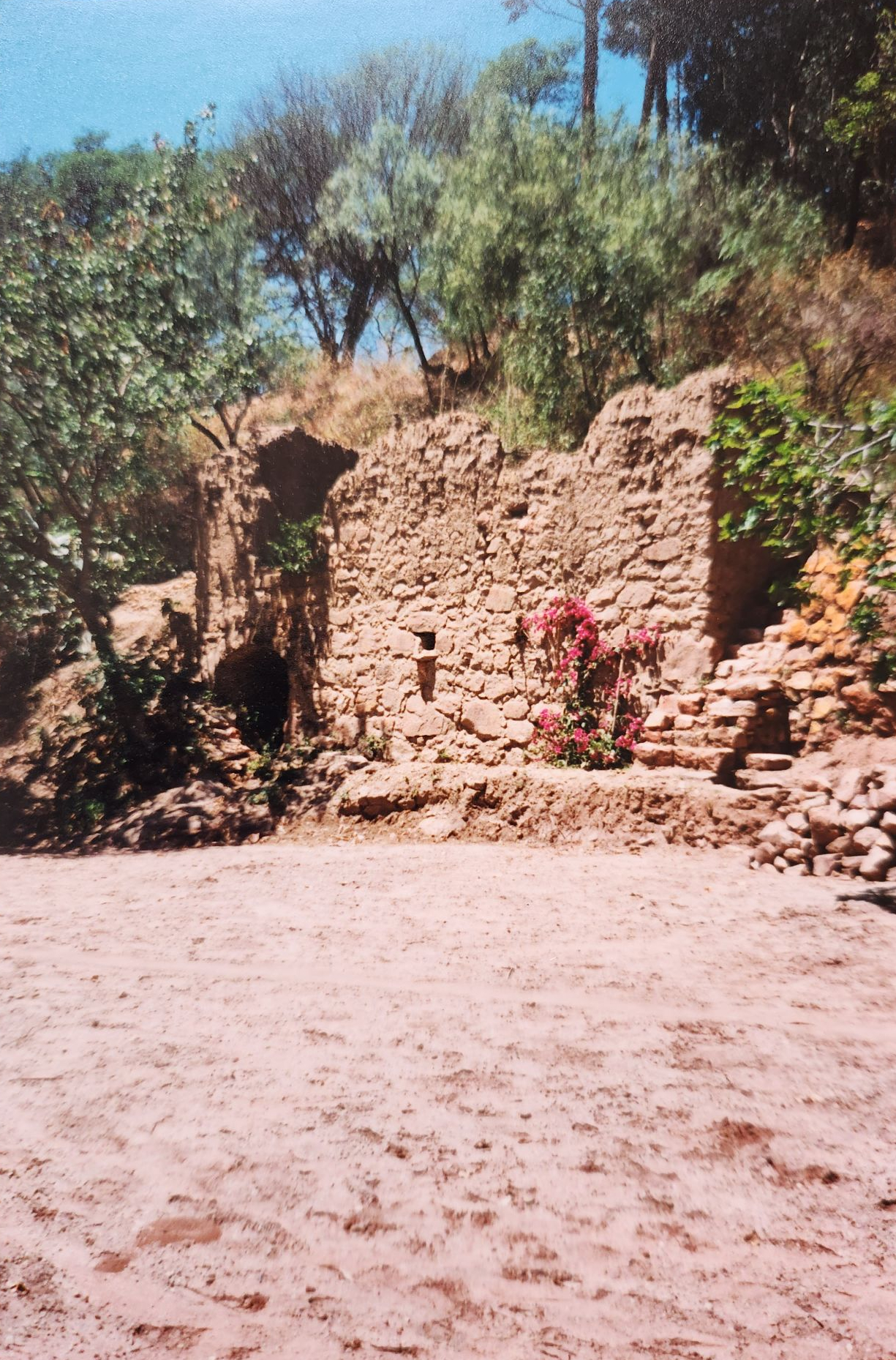 Bis 1999 war das Becken verschüttet und von Eukalypten bewachsen. Noch immer ist es im Hangwald versteckt.