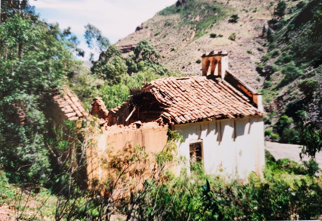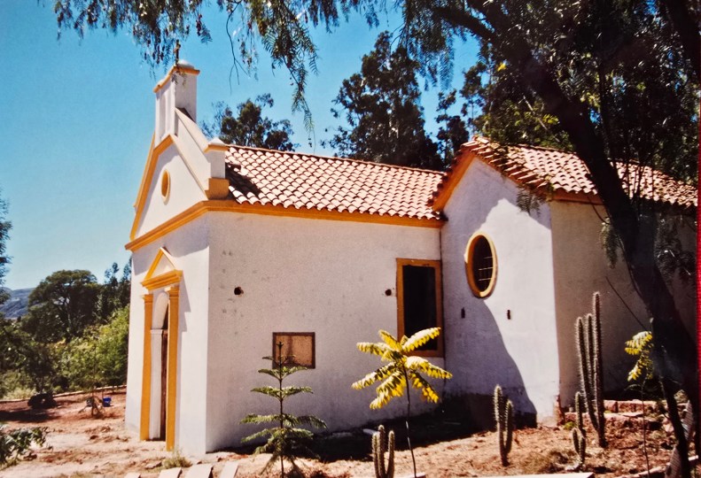Die Kapelle wurde vermutlich zwischen 1890 und 1920 erbaut, als die Ortschaft Huata und mit ihr die Jahrhunderte alte Ortskirche durch Überschwemmungen und Erdrutsche nach und nach unterging, während die Hacienda davon kaum betroffen war. Die Kapelle steht am Hang dort, wo vormals die Thermalquellen entsprangen, die der Hacienda den Namenszusatz „Bad“ gaben. Die ursprünglichen Pools des Heilbades liegen dort noch immer verschüttet. Bis 1998 war die Kapelle – oder vielmehr was von ihr übrig war – zum Ziegenstall inmitten eines Eukalyptuswaldes verkommen. Seit ihrer Restaurierung steht sie wieder für Andachten und Feierlichkeiten zur Verfügung.